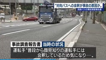 それによりますと、運転手からの聞き取りでは当時の状況について「対向車線を走行してくる同じ会社のバスが目に入り、ふだんから顔見知りの運転手には会釈をしているため、バスの行き先や誰が運転しているのかが気になり、2〜3秒間バスに視線を向けた」などと説明したということです。