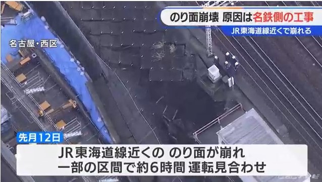 3月12日、名古屋駅から500m北でJR東海道線の線路脇の「のり面」が16.5mに渡り崩れました。