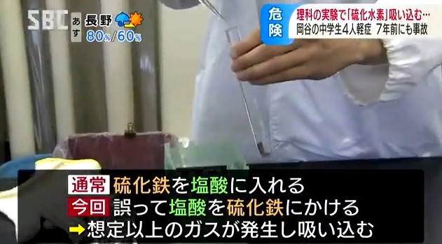 同様の実験は、教科書にも載っているような一般的なものですが、この中学校では、2017年にも実験中に生徒12人が体調不良を訴え、病院に運ばれる事故が起きていました。