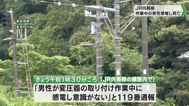 16日午前1時半ごろ、富津市竹岡のJR内房線の線路内で「男性が変圧器の取り付け作業中に感電し、意識がない」と119番通報がありました。
