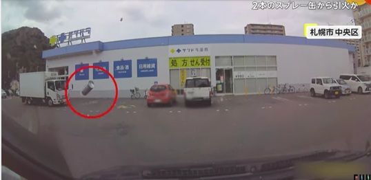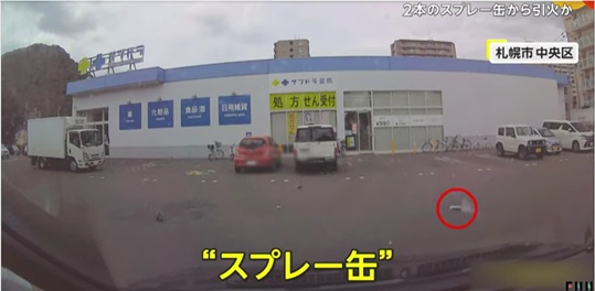 8月7日19時51分にFNNプライムオンラインからは、1本のスプレー缶はガスを噴射しながらコロコロ転がっていったなど、下記趣旨の記事がネット配信されていた。