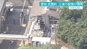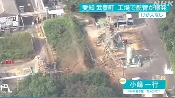 14日午後1時40分ごろ、武豊町の住民から「爆発音がした」と通報があり、消防が駆けつけたところ、化学メーカー「日油」の武豊工場で配管が爆発していたのが確認できたということです。