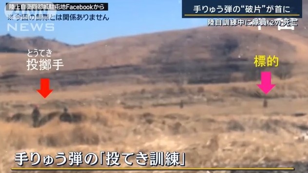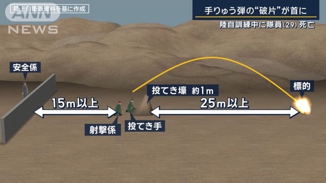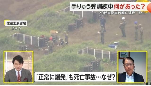 亡くなったのは、射撃などを指導する隊員で、「原因は調査中」ということだが、目標付近に投てきされて、正常に爆発したという。