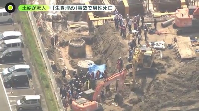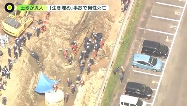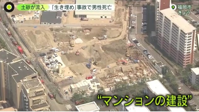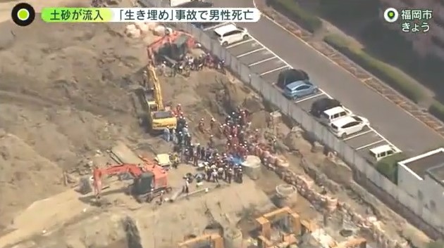 福岡市東区の工事現場で穴の縁が崩れ土砂が流入し、50代の男性作業員が生き埋めになりました。