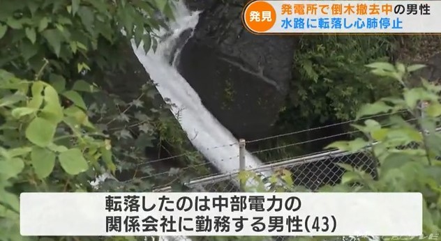 転落したのは、中部電力の関係会社に勤務する43歳の男性で、一緒に作業していた60歳の男性からの通報を受けた警察や消防が捜索にあたったところ、およそ6時間後に水路がつながった先の川で見つかりました。