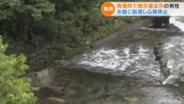この水路は、急斜面にある幅約2メートルの「余水路(よすいろ)」とよばれるもので、男性は同僚と2人で倒木の撤去などを行っていたということです。