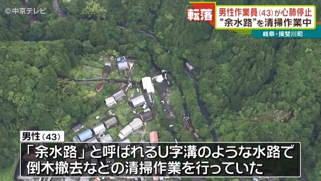 15日午前、岐阜県揖斐川町の中部電力の発電所近くで清掃作業をしていた男性(43)が水路に転落して行方不明になりました。