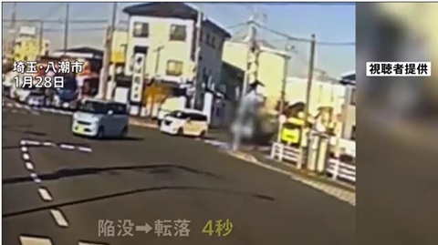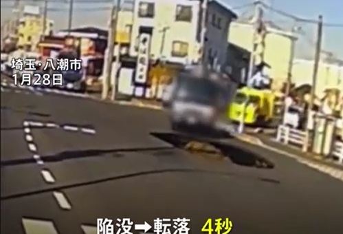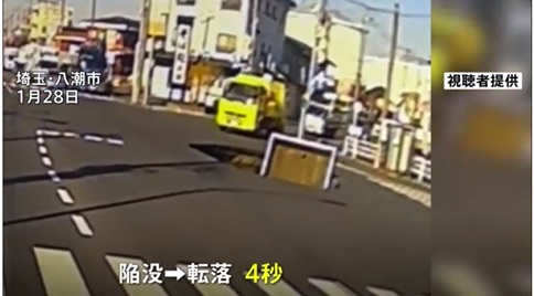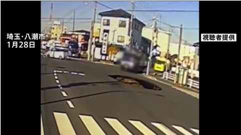 2月1日6時12分にYAHOOニュース(TBS NEWS )から、陥没の瞬間を撮ったドラレコ映像が報じられていた。