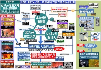 温暖化による森林火災が世界中で多発しているが、その鎮火に合成系の泡消火剤を使えば、生態系に影響を与えるのみならず、水道の水源を汚染するおそれも大きい。