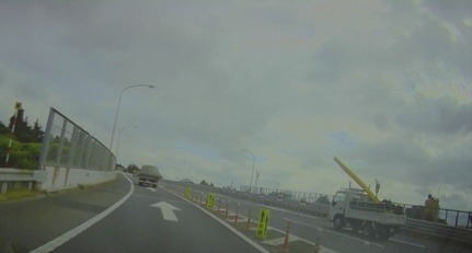 千葉県の高速宮野木JCTで京葉道路から東関東道に合流した際、本線から黄色く長い荷物を運転席に斜めに立てかけたトラックが走ってきた。