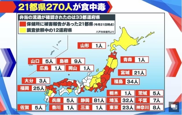 9月21日までに、八戸市保健所には21都県270人の被害が報告されており、他にも被害を訴えている人がいるため、今後さらに増えると見られています。