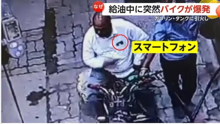 男性がスマートフォンを取り出した瞬間に、炎が上がっており、現地メディアによると、メッセージを着信した際の電磁波で、ガソリンに火が付いた可能性があるという。