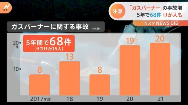 NITEによりますと、「ガスバーナー」に関する事故は過去5年間で68件報告され、15人がやけどなどのけがをしました。