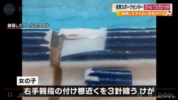 『名古屋市名東区のプールで小6女児、タイルで指を切り3針縫うけが』