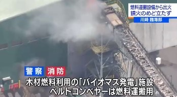 消防と同社によると、敷地内にはバイオマス発電施設があり、ベルトコンベヤー(高さ約10~15m、幅約2m)で、木材の切りくずなどでできた固形燃料を船から運ぶ仕組みだったが、当時は稼働していなかった。