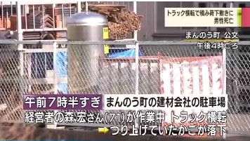 警察の調べによると、森さんは、トラックの荷台の横でクレーンのリモコンを操作していたということで、警察は、トラックがバランスを崩して横転したものとみて、会社の関係者などから話を聴き、安全管理に問題がなかったかどうか調べている。