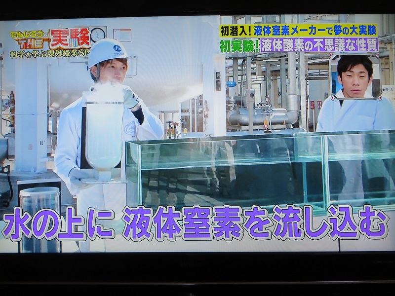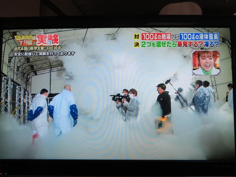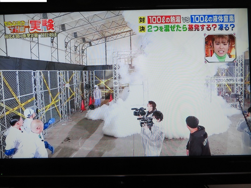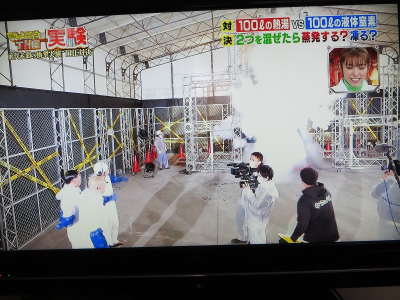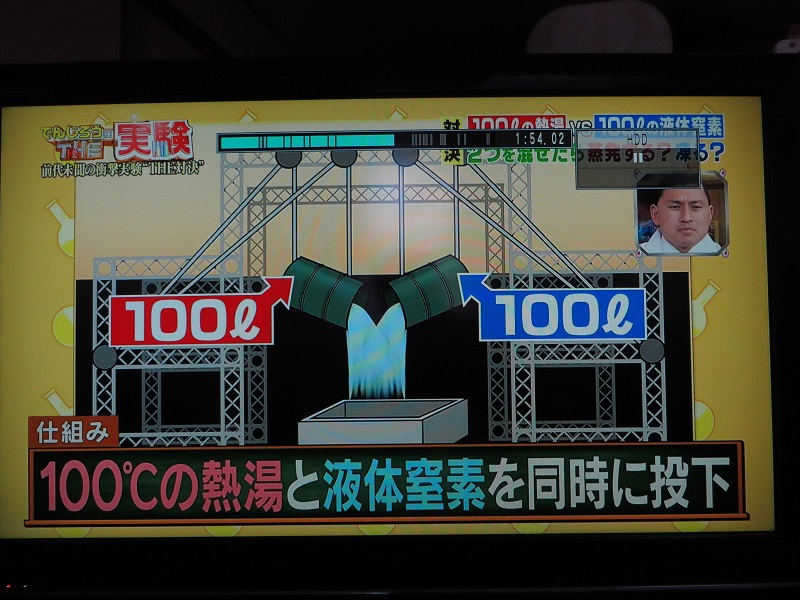 2019年3月17日の朝、新聞のテレビ欄で、『でんじろうTHE実験 混ぜたらどうなるの?100リットル超えの液体窒素vs100リットル熱湯バトル」という番組が20時からフジテレビで放送されることを知った。