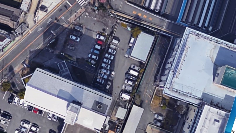 以下はグーグルアースで見た富田林警察署(画面下の建物)。