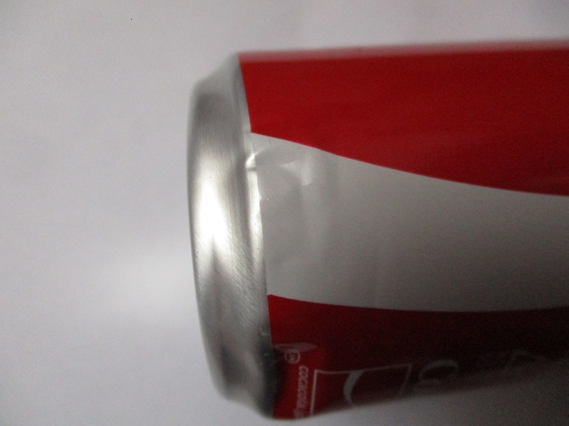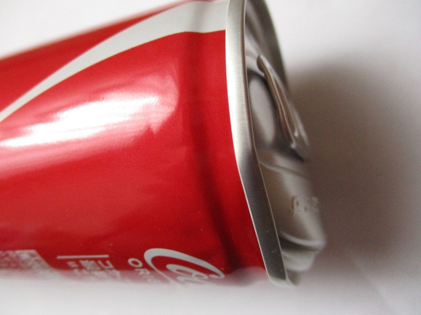 箱買いしたコカコーラ250mℓ缶を箱から取り出したところ、1本だけ飲み口が膨らみ底の縁にヘコミ傷があった。