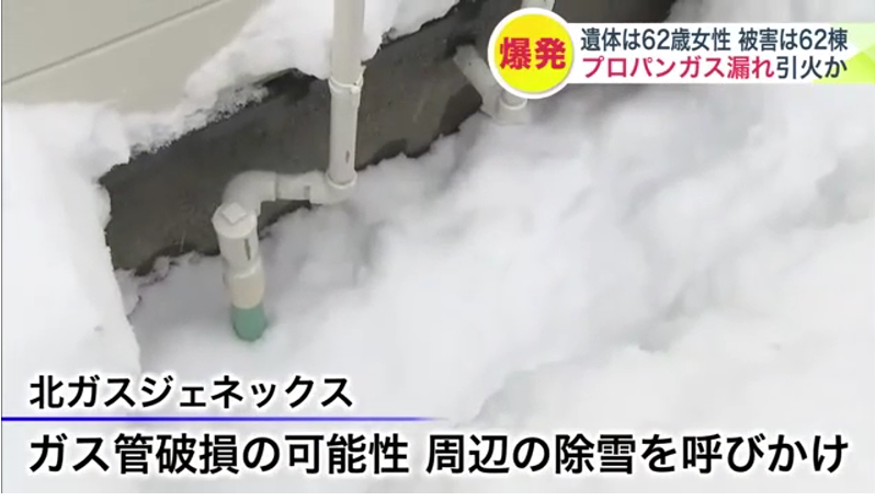 ・漏れたガスが雪と建物の間の空間に溜まり続け基礎の通気口などから屋内に侵入した可能性も考えられるなど。