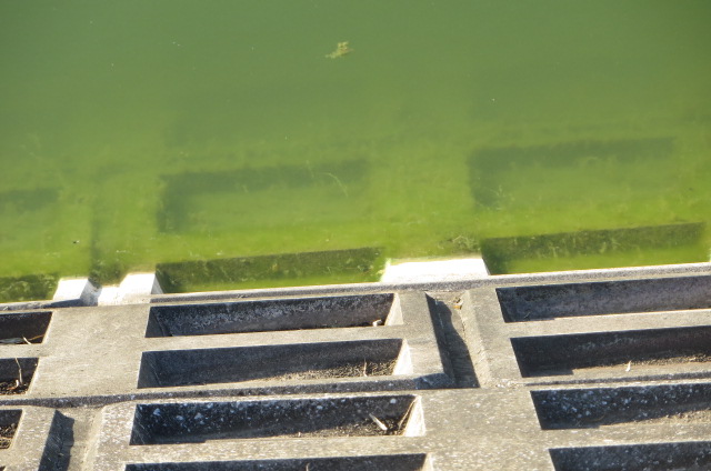 敷地内の排水溝から雨水管を通り、大堀川へ流れ込んだ。