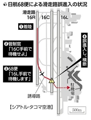 日本航空機が昨年11月、米シアトルの空港に着陸後、管制官の指示を取り違え、滑走路に誤進入したことがわかった。