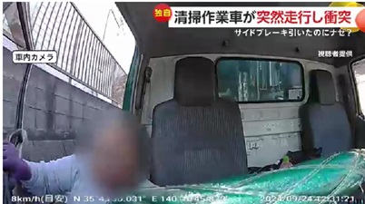 停車とほぼ同時にサイドブレーキをかけたにもかかわらず、収集車は走り出し、なすすべなく衝突。