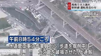 この事故で都市ガスが漏れ出て周囲にガス臭が漂い、警察は安全確保のため、一時、付近の道路を全面通行止めにしてガス管の交換作業が行われ、午前8時過ぎ、復旧作業は完了した。