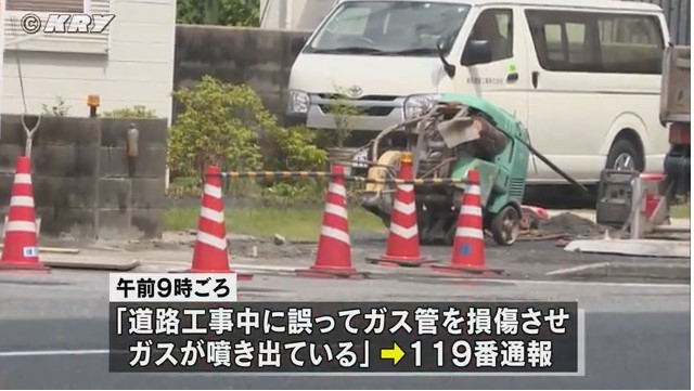 福岡市や警察などによると、午前2時ごろ、明治通りで市発注の側溝改修工事中、業者が重機を使って側溝の撤去作業を行っていたところ、誤って地中に埋まっていた直径20cmのガス管を破損させたという。