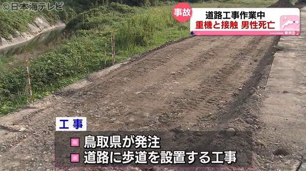 倉吉市で8日、道路工事の作業をしていた60代の男性が重機と接触し、死亡した。