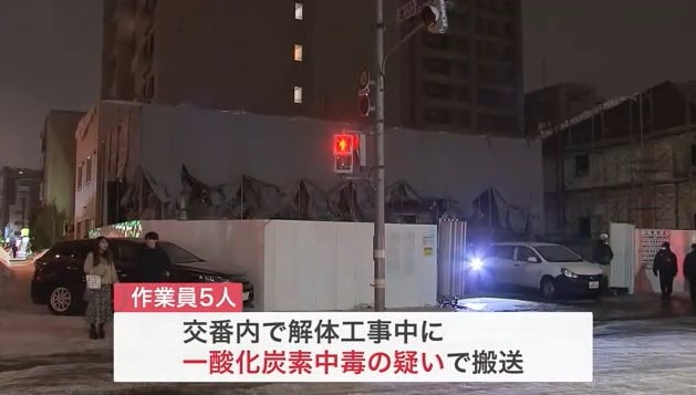 警察などによりますと、2月10日午後5時ごろ、交番の建て替え工事のため、屋内で解体作業をしていた20~50代などの作業員5人が一酸化炭素中毒の疑いで病院へ搬送されました。