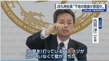 JR九州では23日も、JR鹿児島本線の大牟田駅でセメントの破片がホームに落下するトラブルが起きていて、古宮社長は、建設から一定の年数がたった駅を中心に再発防止に向けた点検を進める方針を示しました。