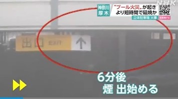 厚木市消防本部によると、現場となった立体駐車場の2階中央付近に駐車後、2、3分で出火したとみられる。