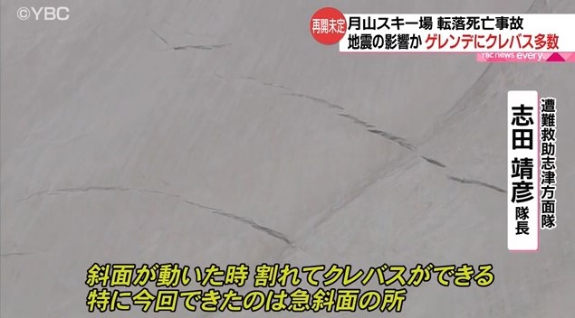 関係者によると、福島県沖で3月に発生した地震などの影響で、今シーズンは例年と比べ、ゲレンデに多くのクレバスができた可能性が高いという。