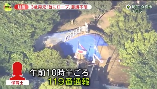 2日午前、埼玉・久喜市の保育園で、遊具のロープが首にまきつき、3歳の男児が意識不明となる事故がありました。