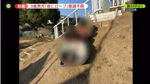 そのとき、ほかの園児が首にロープがまきついた男の子を発見しました。