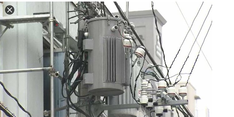 足場の直近に変圧器や電線がある、かなり危険度の高そうな現場だ。