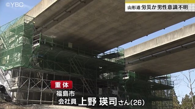 警察の調べによると 上野さんは24日正午すぎ、 山形市関沢の山形自動車道の雁戸橋の下で 超高圧水を噴射するポンプを使い、 橋の土台のコンクリートを削る作業を1人で行っていたが、 作業中に顔や右腕などから出血するけがをし、 病院に搬送された。