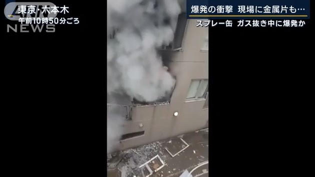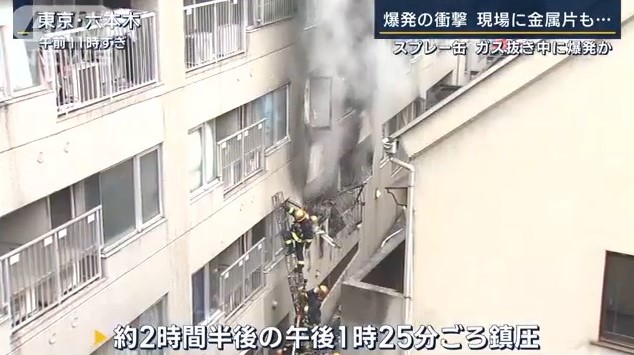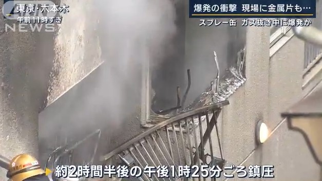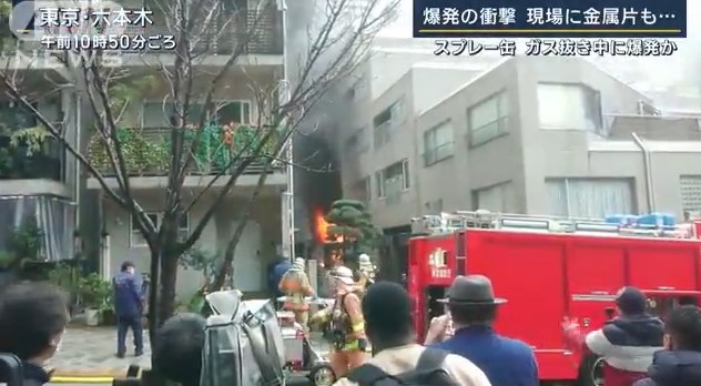 東京・六本木の繁華街にあるマンションで16日午前10時半過ぎ、爆発火災があり、3人がけがをしました。
