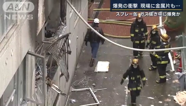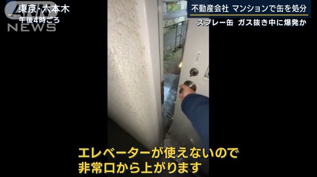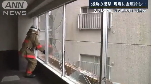 不動産業者の従業員が、消臭スプレーの缶を処分するため、室内で80本近くのガスを抜いて、湯沸かし器をつけたとき、大爆発を起こしました。