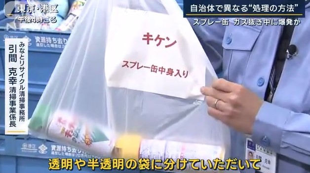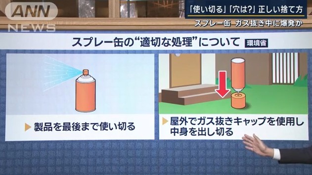 環境省も、札幌での爆発事故を受け、スプレー缶に穴を開けないで処理するよう全国の自治体に求めています。
