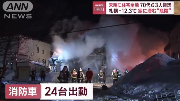消防車24台が出動し、火は約1時間後にほぼ消し止められましたが、木造2階建ての2世帯住宅1軒と車1台が全焼しました。
