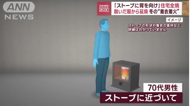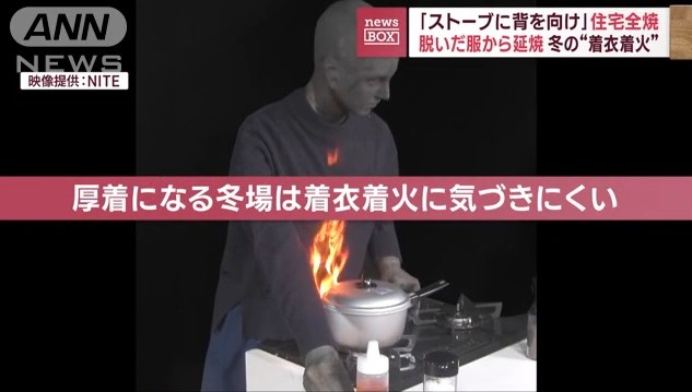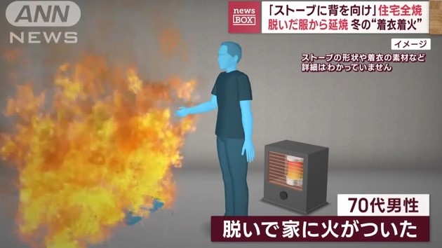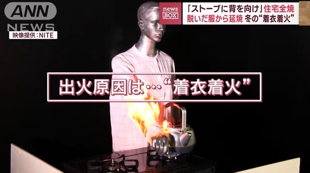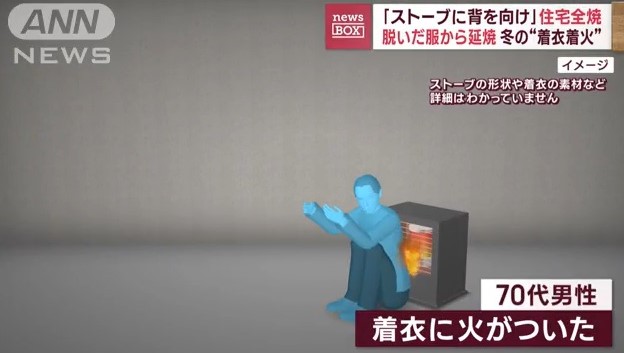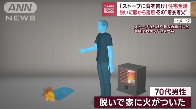 出火原因は、毎年100人前後が亡くなる事故「着衣着火」だったようです。
