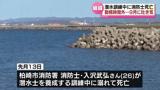 10月13日、柏崎市消防署の消防士・入沢さん(男性)が潜水士を養成する訓練中に溺れ、その後、死亡しました。
