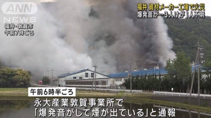 13日午前6時半ごろ、福井県敦賀市永大町にある住宅資材メーカー永大産業の工場で、「爆発音が聞こえ、煙が出ている」と付近住民から119番通報があった。