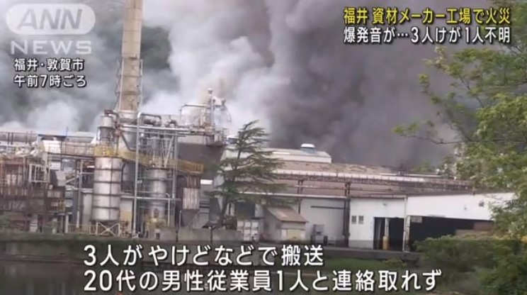 県警敦賀署によると、工場で火災があり、30~50代の男性作業員3人がやけどを負って病院に運ばれたほか、焼け跡から1人の遺体が見つかった。