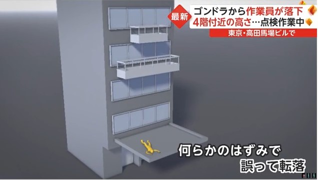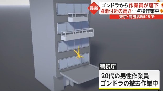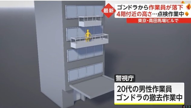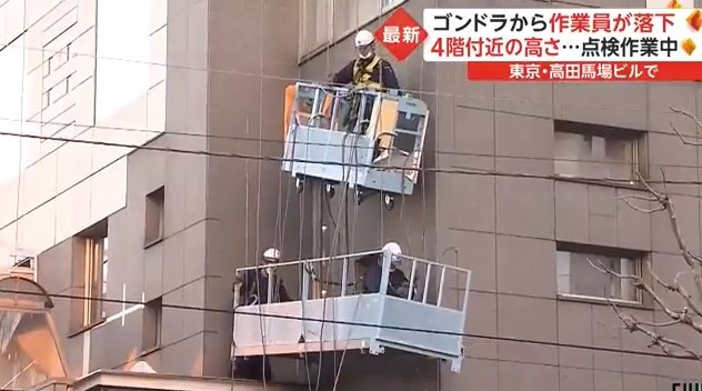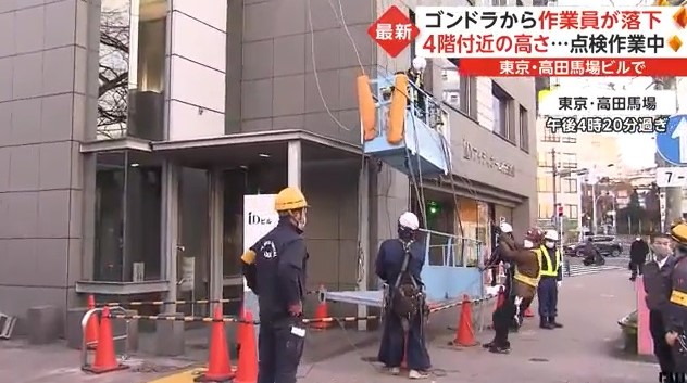 東京・新宿区高田馬場のビルで、ゴンドラから作業員が落下する事故が起きた。