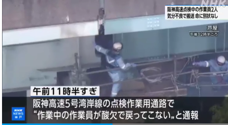 22日午前11時半すぎ、芦屋市陽光町の阪神高速5号湾岸線に設けられた道路の点検作業用の通路で「作業中の作業員が酸欠で戻ってこない」と消防に通報がありました。