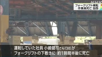 この事故で、運転していた福山通運の社員、小嶋さん(38)がフォークリフトの下敷きになり、意識不明の重体で病院に搬送されましたが、およそ1時間半後に死亡しました。