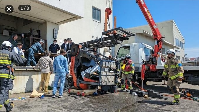 5月1日午前11時半ごろ、「フォークリフトが倒れていて、1人が挟まれている」と、通行人とみられる人から消防に通報がありました。
